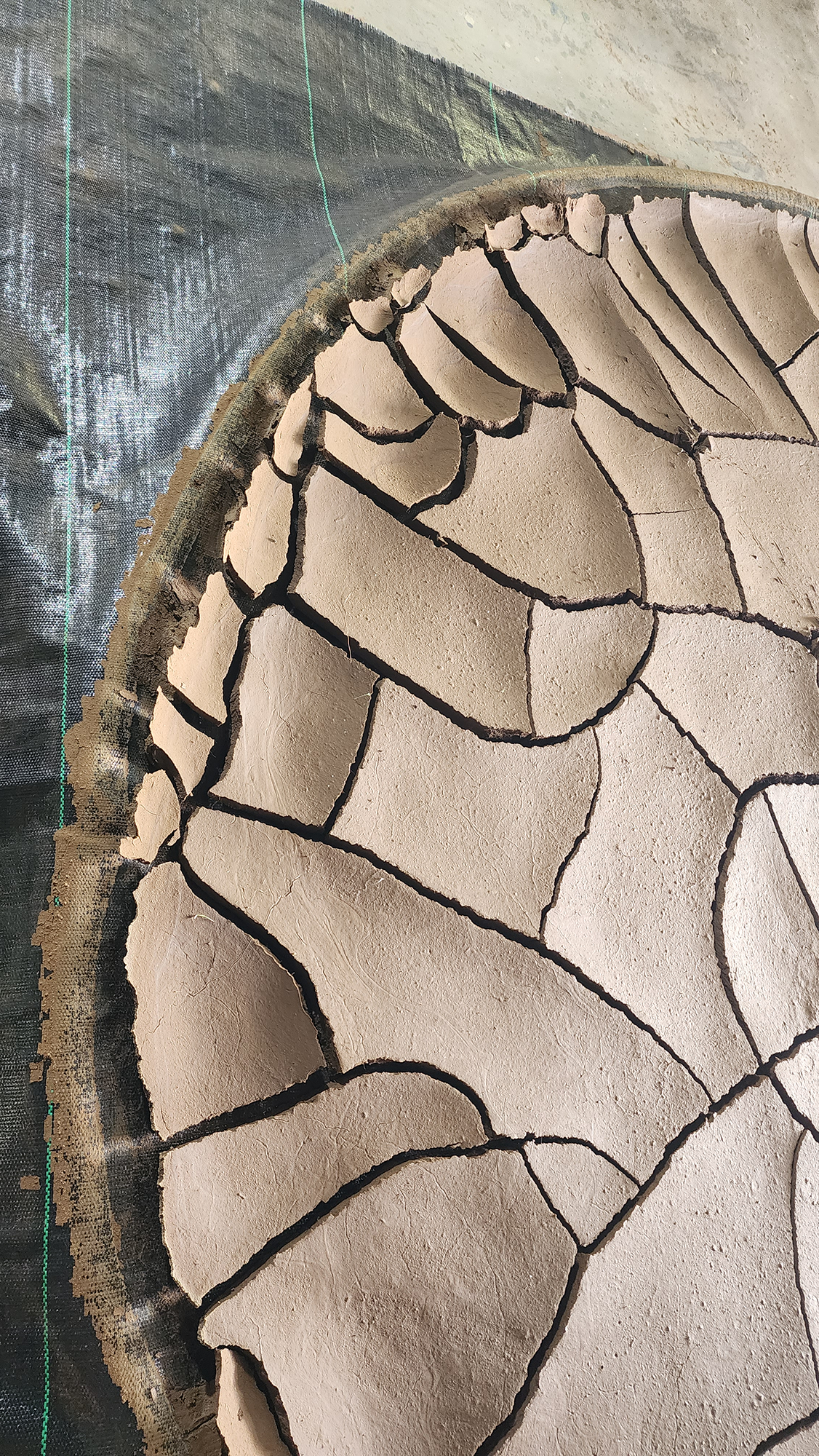 Alwar Balasubramaniam The work I have created continues my long-term exploration of nature and its processes. It comes from observing how earth, water and air interact over time, and how simple shifts, like moisture drying or dust settling, can slowly bring a form into being. It is the physical result of the bonding and separation of earth and water. These forms emerge from the cracks created as water evaporates from the soil. The way the land drifts, segments or becomes isolated serves as a symbol for our own fragmentation – the act of distancing ourselves from the whole or from one another.