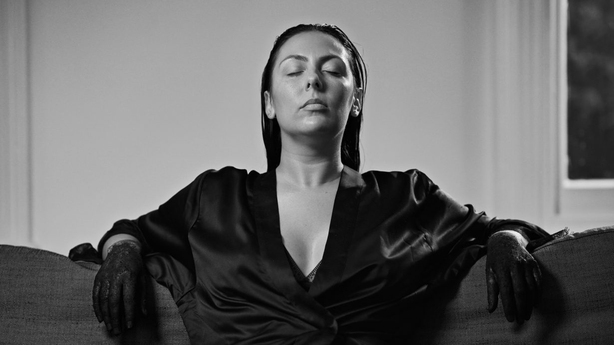 The monuments expand and solidify as Eternity breathes meditatively; sometimes in long, slow intakes, at other times in short, staccato pants. Rhythmically mirroring these breaths is a soundscape of birdsong. At first, only the sounds of a few softly heard native birds emerge, gradually building into the full cacophony of the bush in the heat of summer at dusk. It’s as if Eternity is conducting them with her breath, both the monuments and the birdsong, folding them into one another, interdependent and interconnected, with each intake. As the sonic swell builds, Eternity begins to chew ochre, masticating it into a paste and breaking the soundscape’s crescendo with a final expectoration – a spray of white ochre paste over the black monuments. This ceremonial eruption of pigment silences the birdsong and gives voice to the monuments: as though enlivened by the ochre, their hurried, indecipherable whispers rise in volume until Eternity, with a single sharp exhale, topples them all.