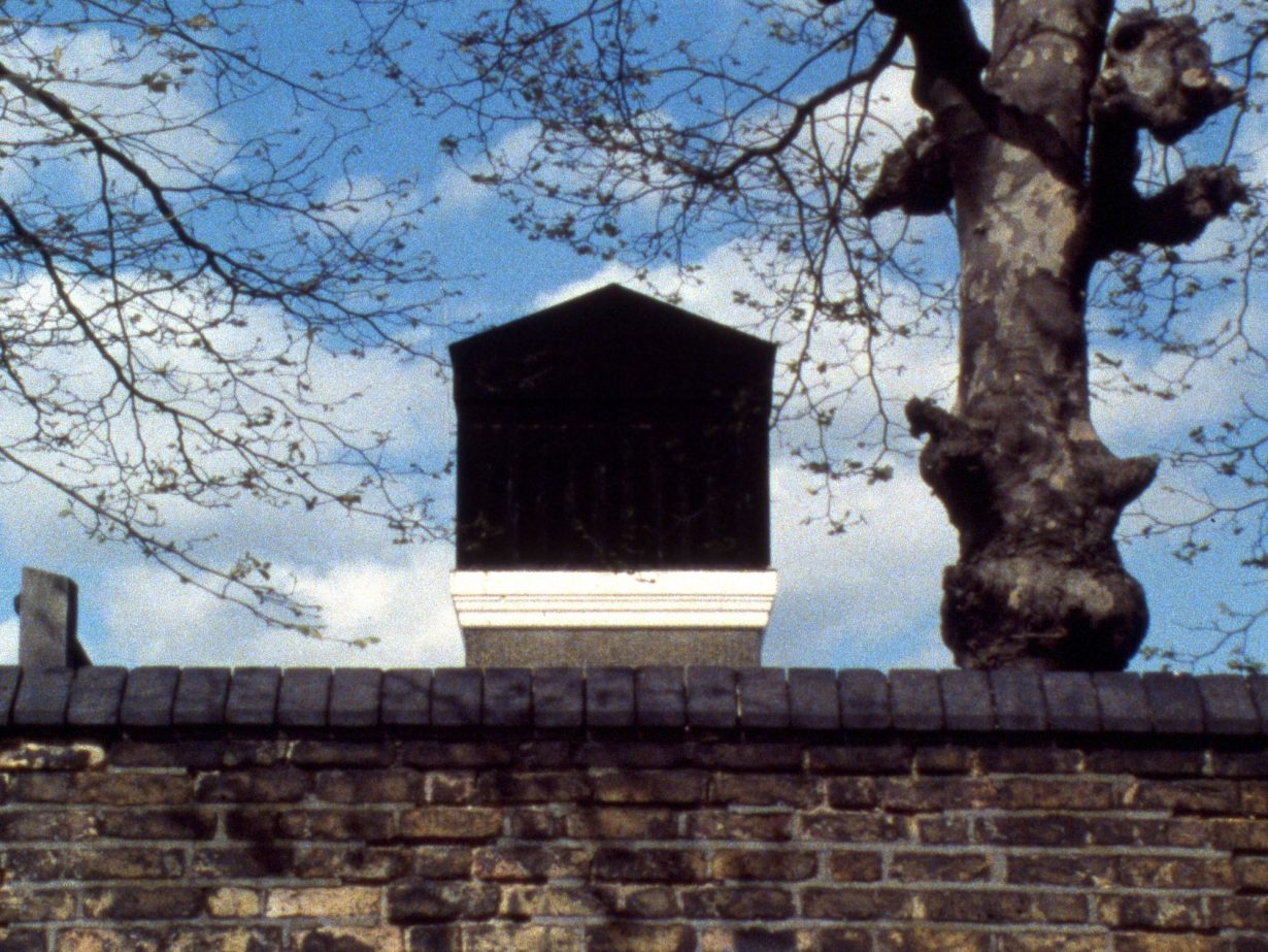 What distinguishes Smith’s early films, from the 1970s (when he was still at the RCA), is their clear engagement with the structuralist approaches to filmic form that had emerged in the independent film movement of the late 1960s and early 70s while redirecting them towards a less austere, more humanised and playful encounter with everyday reality. Unlike the often grindingly sober, emotionless and self-referential early structuralist experiments in film and video (the kind of works where a video camera might point at a video monitor of its own feedback, or in which the optical soundtrack of film would be transferred to the visual frame, matching the technology of the image with that of its sound), Smith’s films always appear rooted in the homely banality of everyday suburban experience, which makes his impish short-circuiting of narrative and documentary modes all the more effective. In The Girl Chewing Gum (1976) a camera films a street in Hackney; off-screen, a voice appears to direct the actions of the various pedestrians and vehicles as they come into view, until it becomes ludicrously apparent that this voice is only narrating the actions that it pretends to direct (Smith’s geekishly nasal London accent demanding that birds fly across the shot, or instructing the hour hand of a clock to make one revolution every 12 hours, and so on).