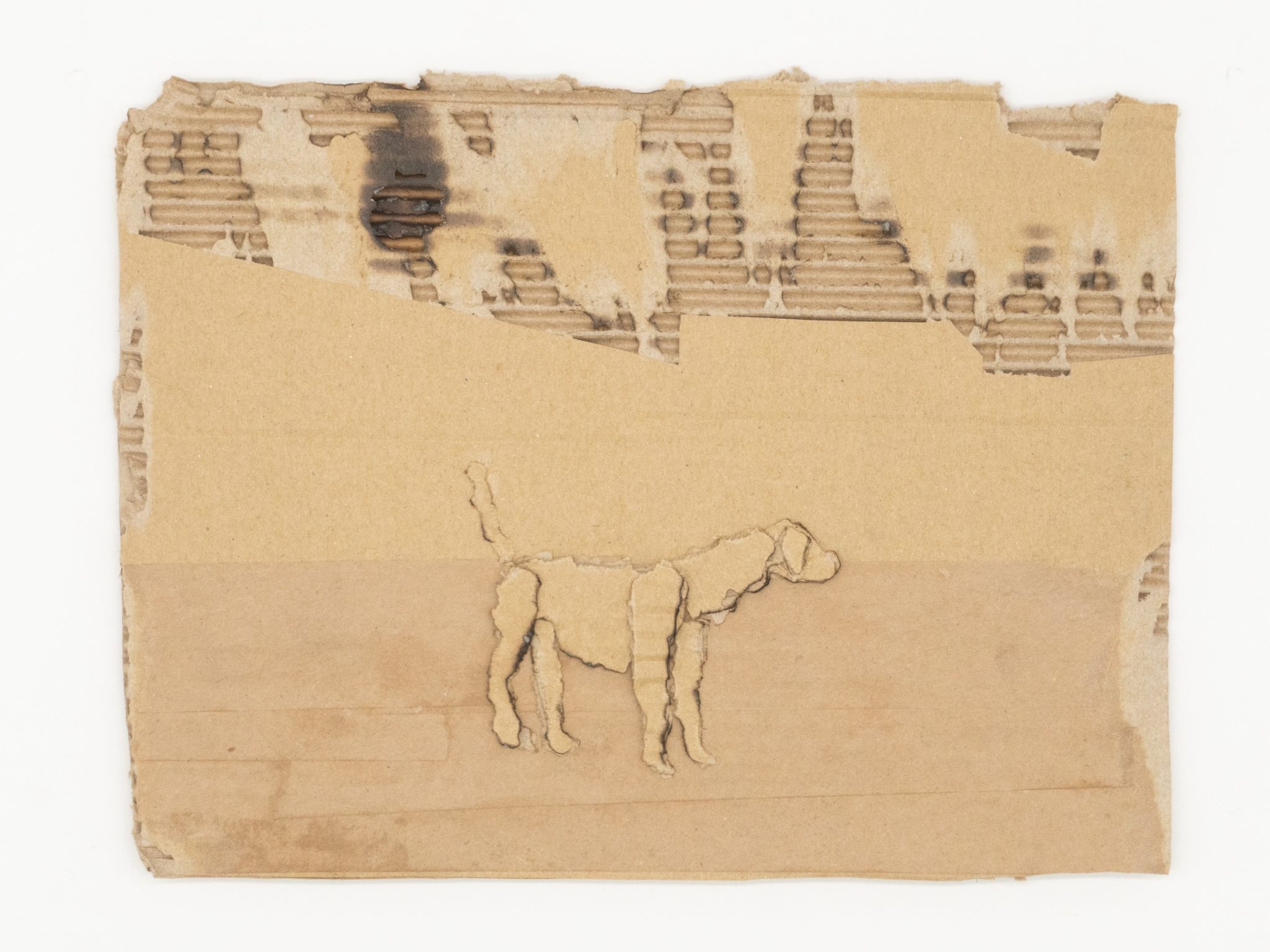 The Dogs (Burnt Hole), 2025, cardboard, 20 × 26 cm. Courtesy the artist and Shanghart, Singapore