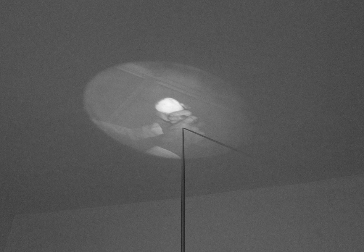 Such dialogues between object and text serve to position this show as a diaristic record, or even an aestheticised form of self-portraiture or documentary, but these works also lend themselves to more universal, and sensual, framings. Key in this regard is a silent 11-minute video by her longtime artistic partner, Trương Quễ Chi, in which a man intently peels a potato (Peeling, 2019). Its sole gesture – the peeling action is visible only when you look at a make-up mirror on the floor from a certain angle, or at its reflection onto the ceiling – nudges this show into the realm of ontological, rather than personal or ethnographic, inquiry: thoughts on the nature of time, perception and the bodily being begin circulating. These connotations start out faintly but grow in intensity as other silent shorts on display wash over you, all of them involving human physicality or motion: a couple caress in the dark in Gabby Miller’s Resting (2020); Miller disappears into a black void while standing on her head, then reappears, in her Peephole (2018); people rock in chairs, slouch in beds and walk backward and forward through corridors in Nguyễn’s more recent work, Walk (2023). By the time you sit down to watch the longest video in the show, The Encounter (2021) – which was shot around the Red River delta and features cameos from football players and a folk-poem-quoting old man – Nguyễn’s oft-cited interest in the shape of her external reality sits alongside an interest in the shape of interior lives. Here the residues of a particular place become the building blocks of memory, and the plasticity of her practice seems to serve a deeper, philosophical excavation.