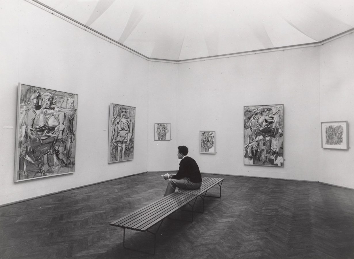Israel and Russia own their own buildings in the Giardini, and while the Guggenheim Foundation owns the US Pavilion, its exhibitions are currently co-organised with US Department of State: the US opened its pavilion in 1930 under private patronage after years of unsuccessful lobbying for public funds at home, its presence in the European showcase cooked up during a ‘pleasant luncheon’ the previous year between sculptor Antonio Mariani and the art dealer Walter L. Clark. It was only later that ownership of the Palladian building was transferred from Clark’s commercial cooperative Grand Central Art Galleries, first to MoMA in 1954, and then to the Guggenheim Foundation in 1986. The MoMA years correspond with the height of the Cold War, and it was no coincidence that it was brought under the governance of the New York institution at that particular moment: MoMA had long been a proxy for the US government to conduct cultural diplomacy. That same year it installed 27 paintings and drawings by the Abstract Expressionist Willem de Kooning in the pavilion; Nelson Rockefeller, who had left the museum presidency in 1953, was starting his ‘special assistant’ role, coordinating psychological warfare, with the Eisenhower administration. By now, any pleasant repasts still being enjoyed hid the more important aim of demonstrating to the world that the US was not the cultural backwater Russia often made it out to be, the freedom of Abstract Expressionism historically promoted by way of active contrast to the regimentation of Soviet Socialist Realism.